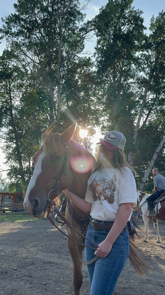 She has spent most of her summer days helping around the ranch with moving and sorting wild horses, and getting in some bonding time with the saddle horses in the fields.